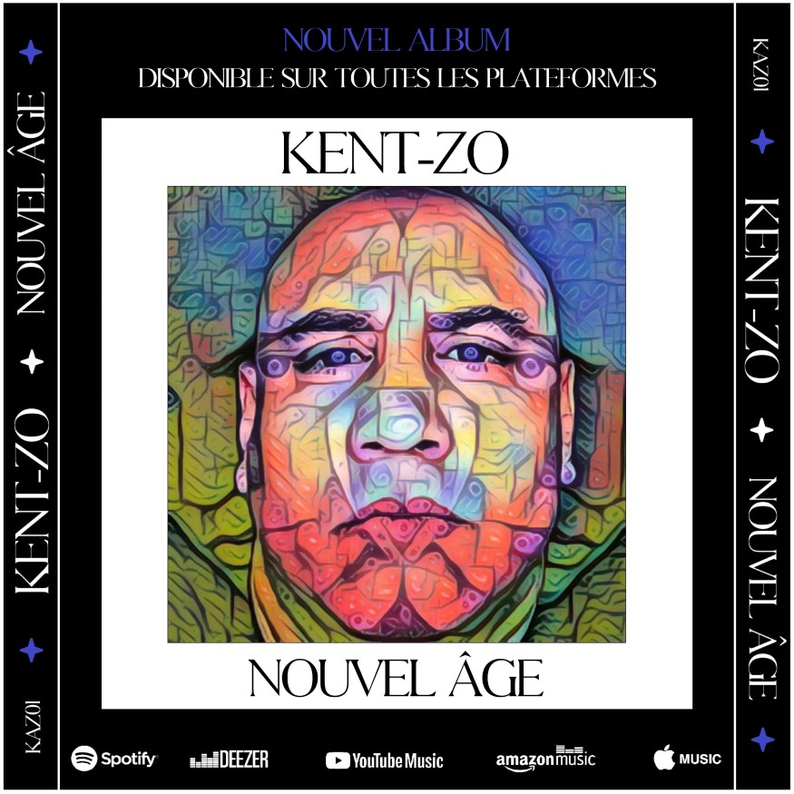 « Nouvel Âge » Disponible sur toutes les plateformes de téléchargement légal Dans son album "Nouvel Âge", Kent-Zo traverse le temps avec un œil et une plume toujours aiguisés. Ce sont 13 titres où le MC Lyriciste interpelle et pousse à se questionner sur des sujets aussi brûlants que sensibles, lui tenant à cœur. Pour cela, il réunit 5 compositeurs de talent, issus de divers horizons. Un pari audacieux, porté par l'espoir d'un monde meilleur.